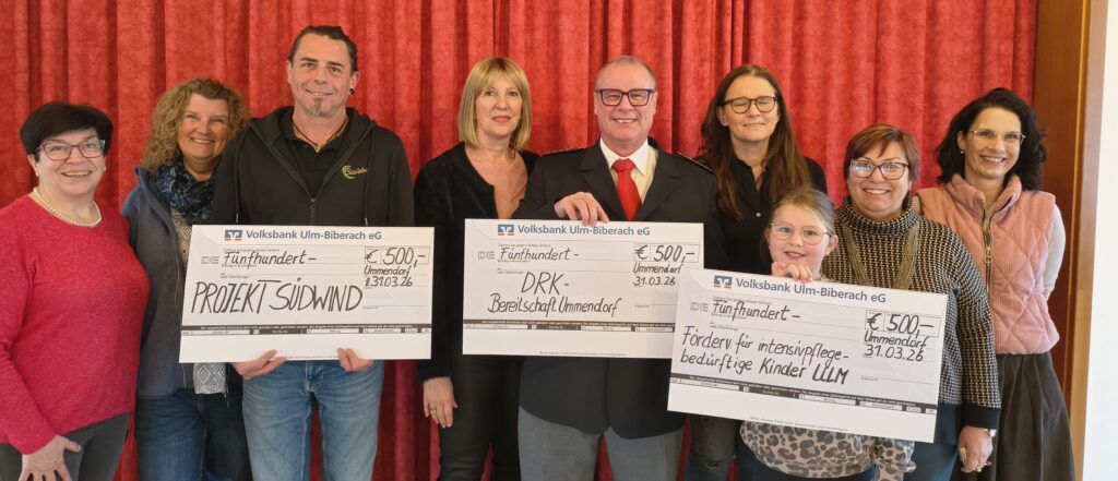 Über die Gesamtspende von 2.000 € von unserer Frauenfasnet 2026 freuten sich vier Institutionen. Jeweils 500 € übergaben wir am 31.03.2026 an